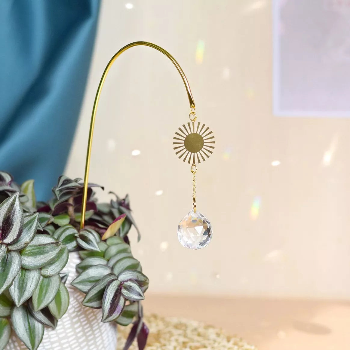 Faites de votre chez-vous un lieu qui vous correspond, où sérénité et douceur sont les maîtres-mots ! En Feng Shui, l'attrape-soleil est un objet traditionnellement utilisé pour l'harmonie qu'il apporte. Exposez-le à la lumière du soleil et invitez ainsi le Chi à circuler dans votre espace de vie. Grâce à son format "à planter", vous pouvez décorez vos plantes en plantant votre attrape-soleil à l'intérieur. Tout comme le lever et le coucher du soleil, la danse du cristal viendra habiller vos murs de ses mille et un faisceaux. Profitez du moment présent et prenez un instant pour admirer le spectacle de lumière qui se produit sur vos plantes et dans votre intérieur... Symbole de joie et représentant le dieu du Soleil dans l'hindouisme, Surya fera rayonner votre lumière intérieure et vos énergies pour les diffuser tout autour de vous.