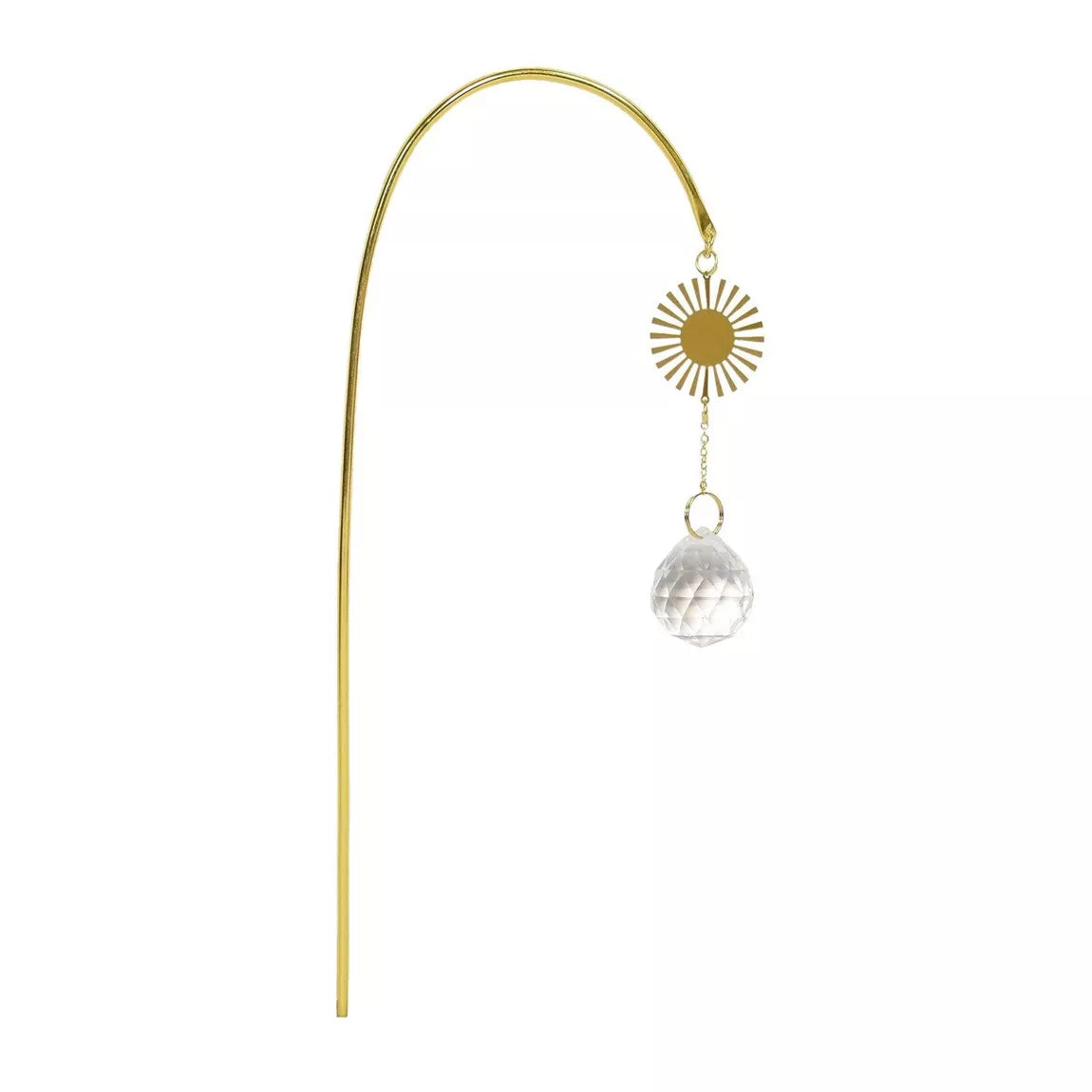 Attrape-soleil Surya en laiton doré, acier inoxydable et cristal de verre facetté. Longueur d'environ 24 cm.