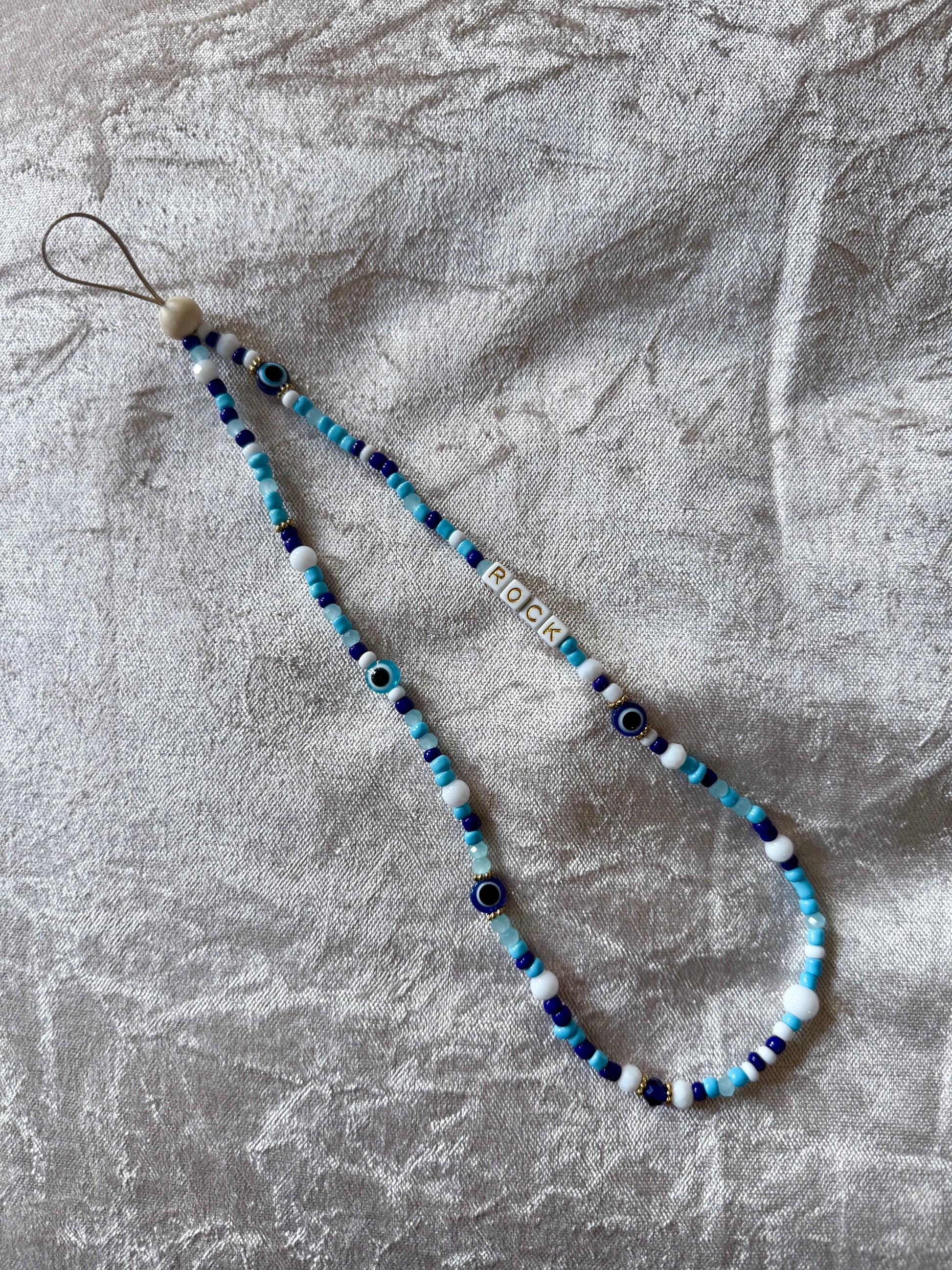 Un mélange de bleu profond et de blanc éclatant, ponctué de détails protecteurs et du mot ROCK. Un accessoire bohème qui attire le regard et sublime votre téléphone en un instant.