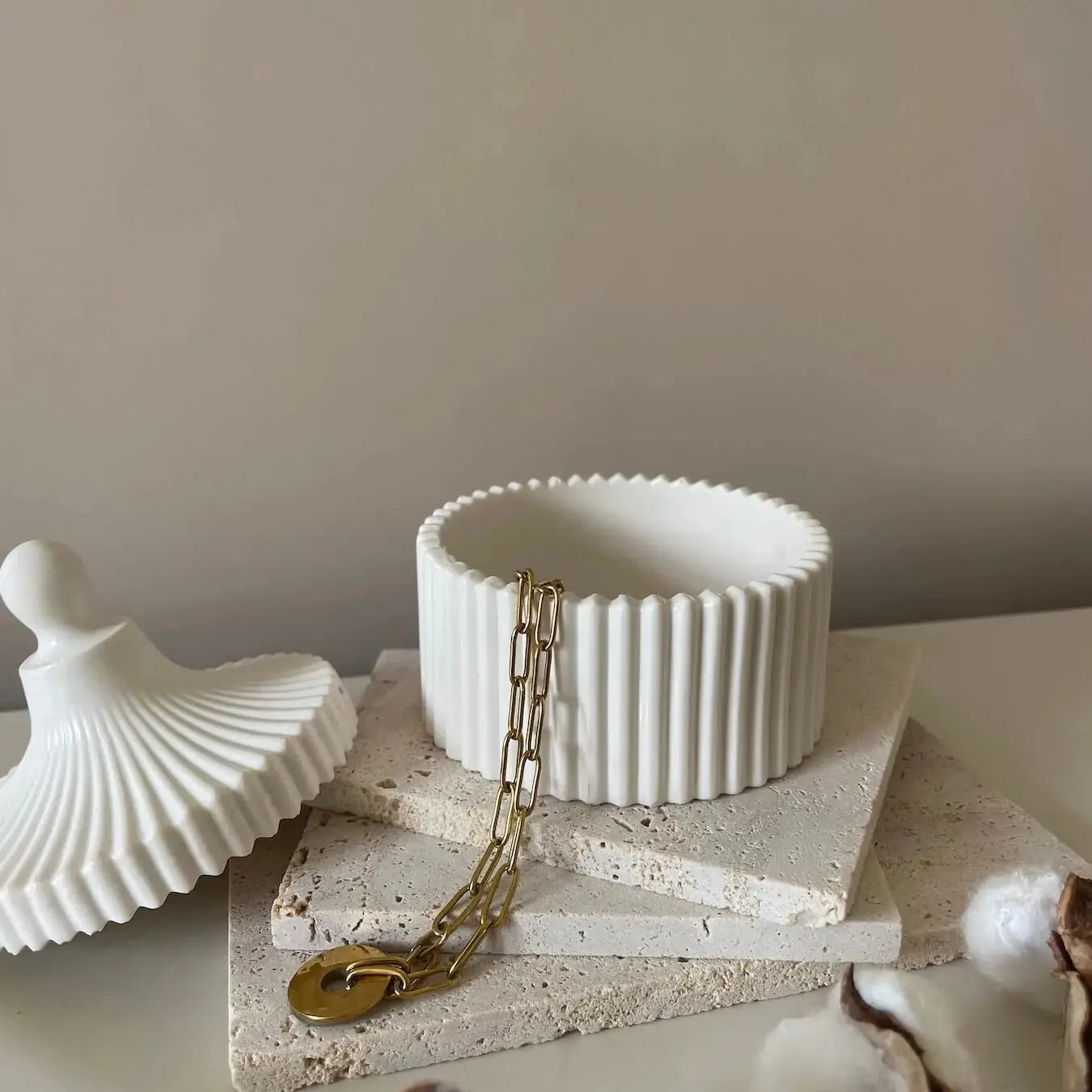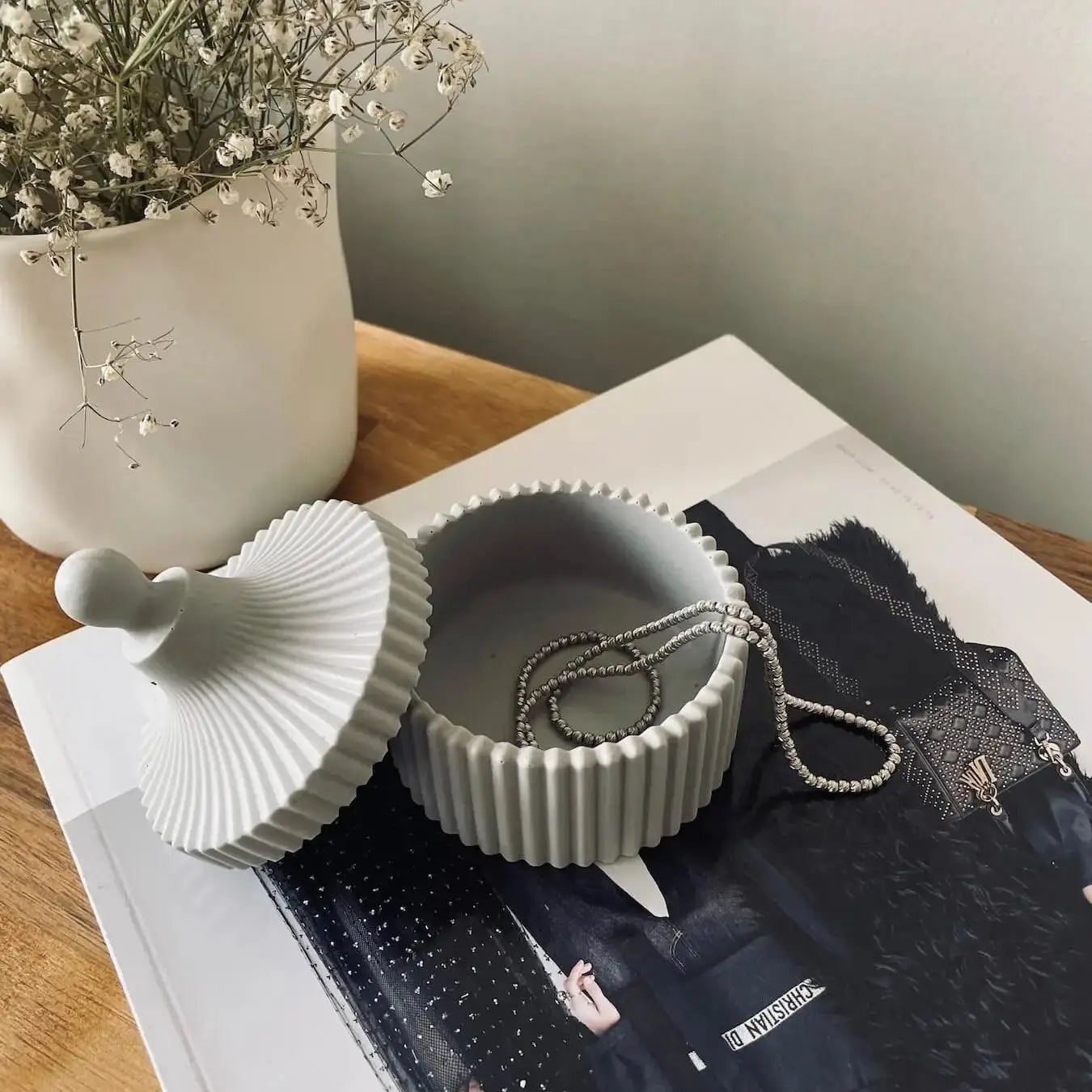 La boîte striée à couvercle est l'accessoire de rangement parfait pour vos bijoux précieux.